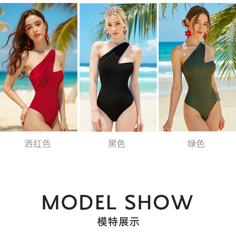 • One – Piece Bikini Style: This swimsuit combines the simplicity of a one – piece with the sexy elements of a bikini. It has a pure – color pattern, which is simple yet elegant, conforming to European and American fashion aesthetics. The design can well modify the body lines, playing a role in covering flesh and showing slenderness, enhancing the wearer’s confidence.