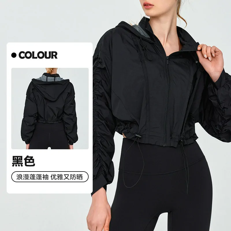 - Style: Hooded sports jacket, short length, solid color