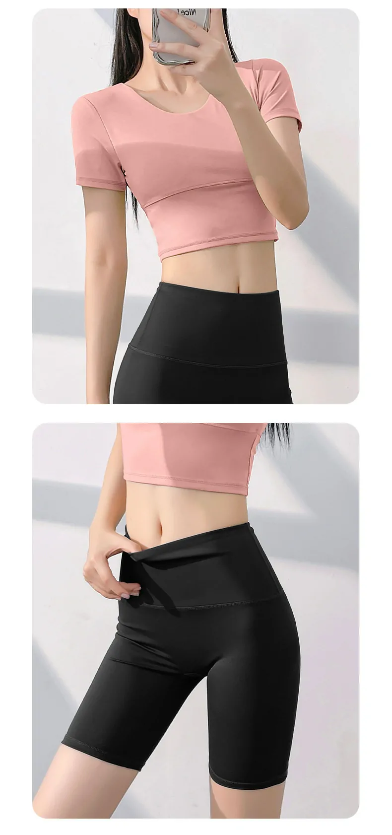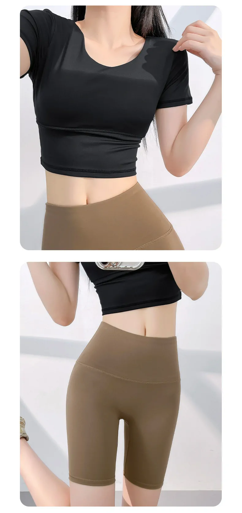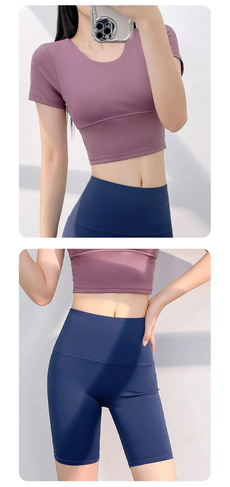• Body-Sculpting Crop Top Design:​ The form-fitting, short-sleeve crop top and coordinating bottoms offer a flattering, streamlined silhouette that stays secure during dynamic activity.
