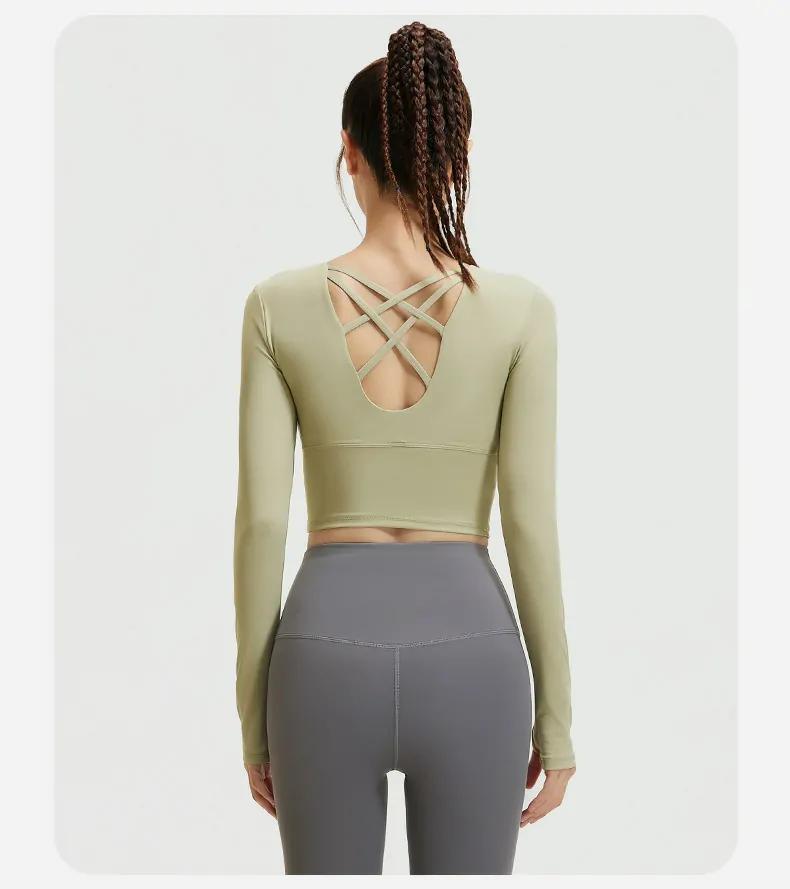 Premium Women’s Long Sleeve Cropped Fitness Top | Quick-Dry & Four-Way Stretch