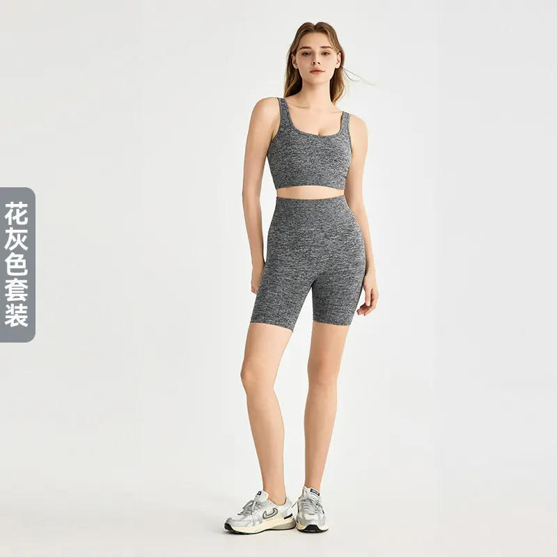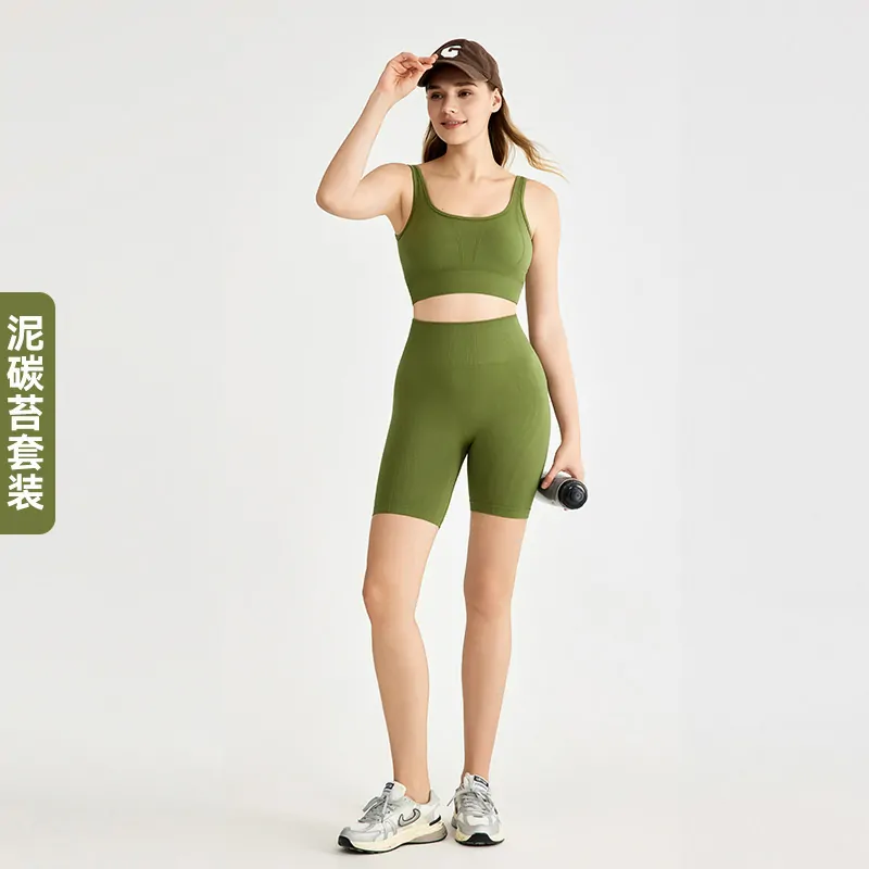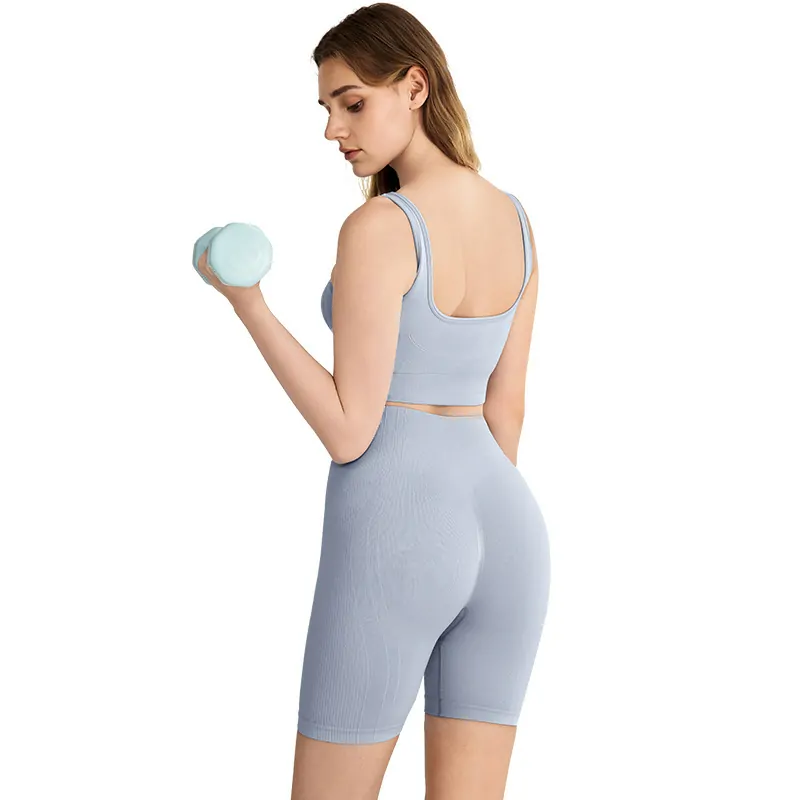 Introduce a premium, performance-focused essential for the upcoming season. This seamless yoga set is crafted from a revolutionary 90% Nylon and 10% Spandex 3D Ultra-Soft AB yarn fabric, offering a true “second-skin” feel with exceptional four-way stretch, breathability, and enhanced durability. Designed as a slim-fit, sleeveless crop top with matching shorts, it provides a modern, body-hugging silhouette with complete freedom of movement. The top features a removable padded bra​ for convenient modesty and support. Launched in fresh, sophisticated colors for Spring/Summer 2025, this set is a versatile, high-quality​ offering available for immediate order.