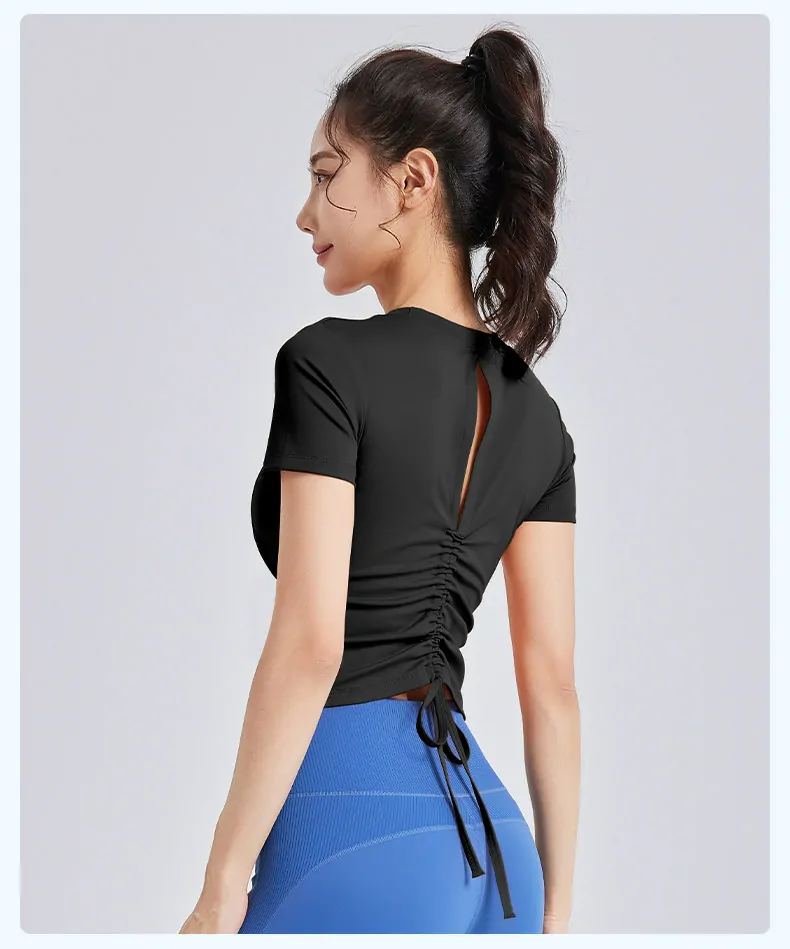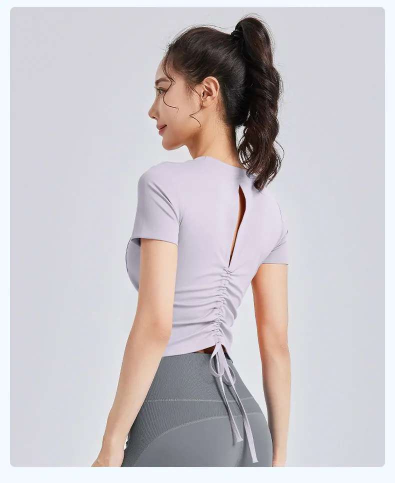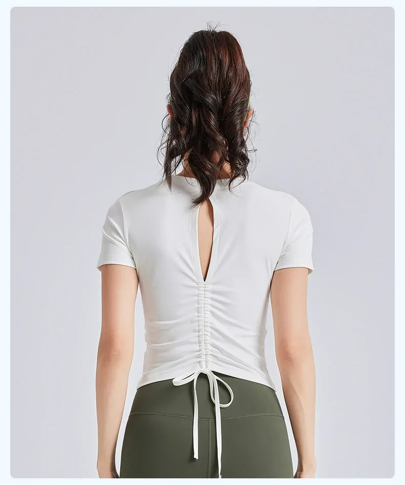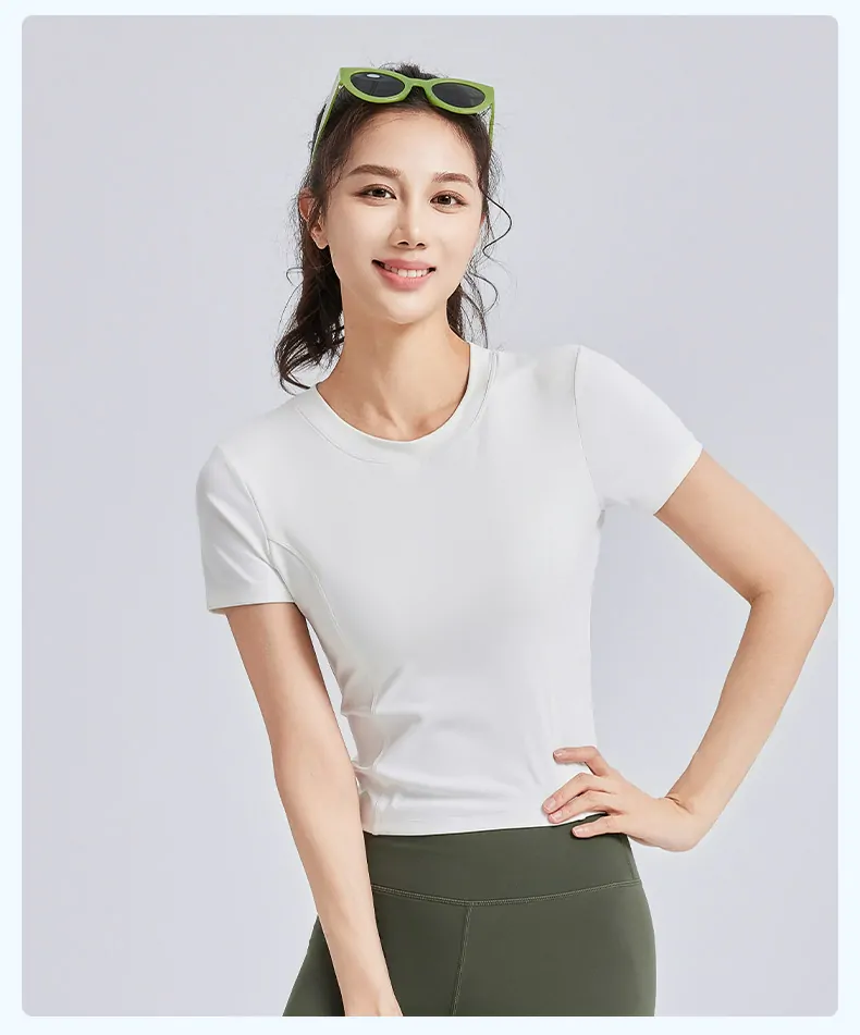 - Body-Contouring Fit: Features a tight-fit silhouette with short sleeves that ensures maximum flexibility and freedom of movement, effectively preventing ride-up during exercise.